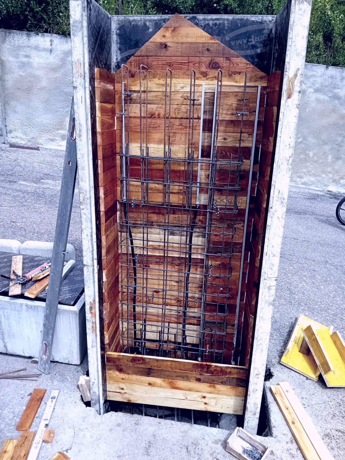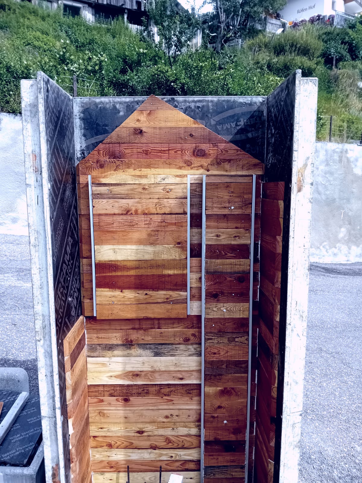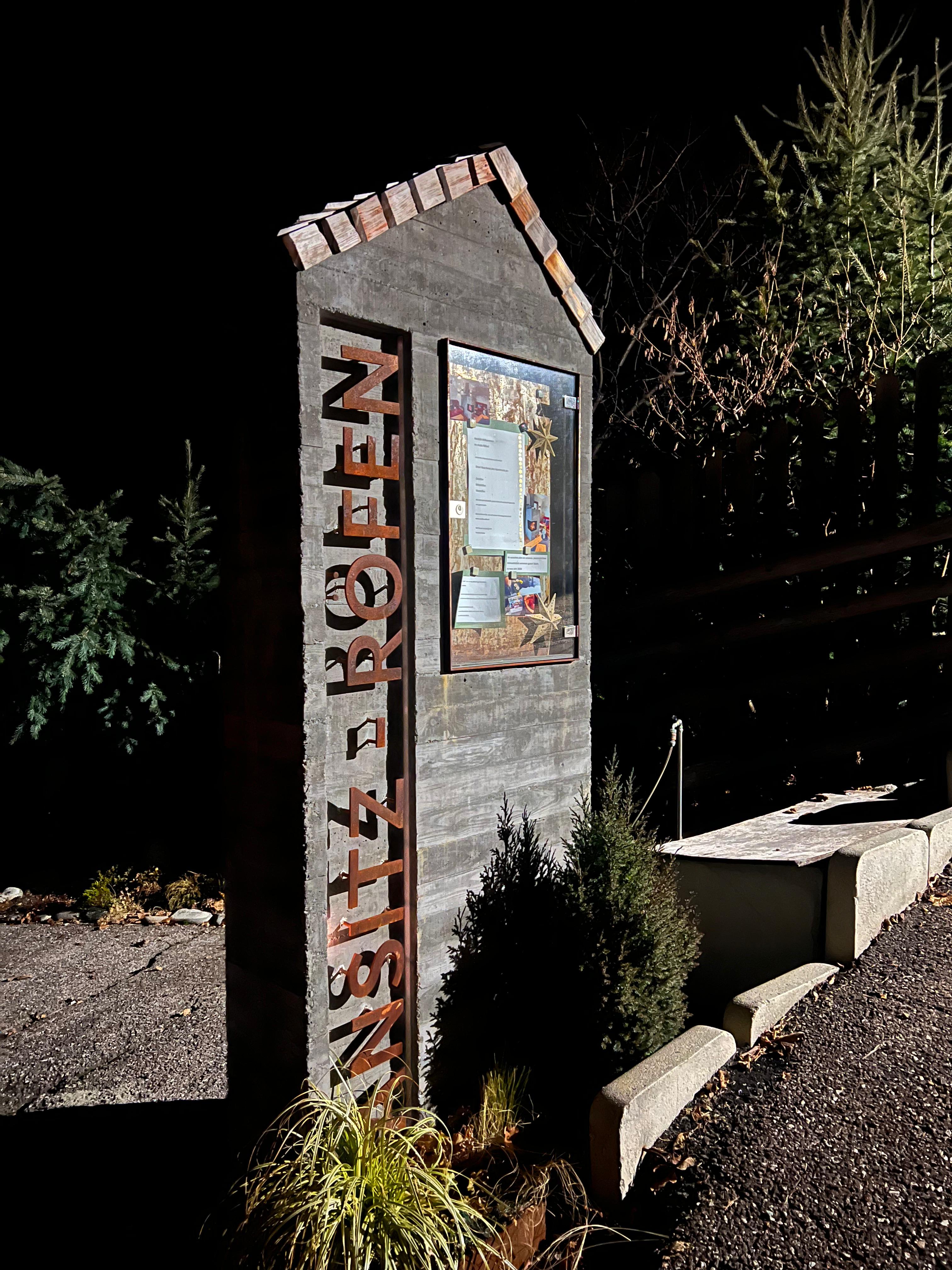 Besonderes Augenmerk lag auf der sauberen Ausführung des Sichtbetons, den klaren Linien sowie der dauerhaften und witterungsbeständigen Konstruktion durch das Schindeldach. Der Schaukasten fügt sich harmonisch in die Umgebung ein und verbindet funktionale Nutzung mit einer schlichten, zeitlosen Gestaltung.