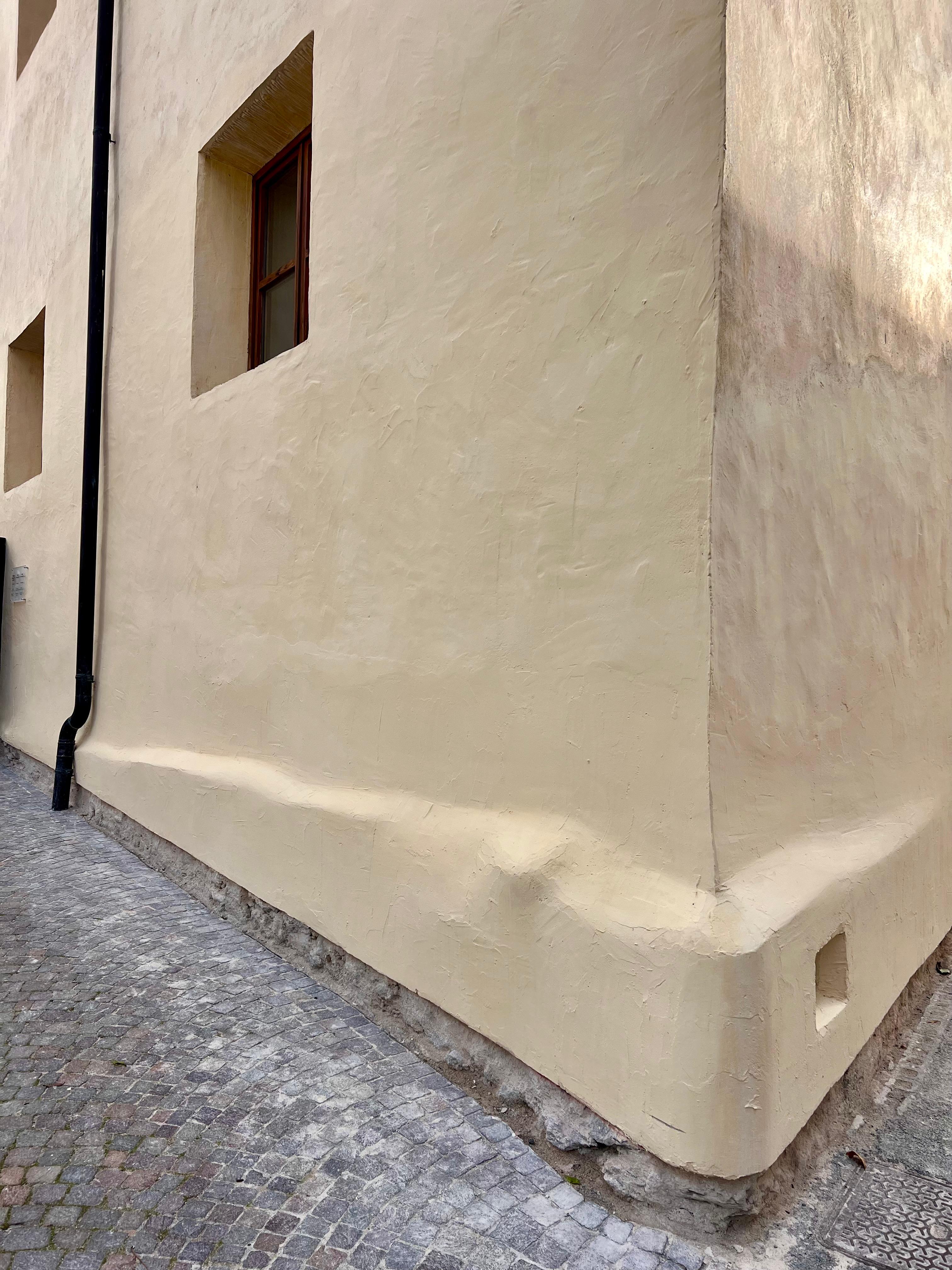 Unsere Arbeiten umfassten, die Lokalisierung und Freilegung der beschädigten Putzbereiche, die fachgerechte Entfernung des geschädigten Materials, anschließend die Restaurierung der betroffenen Flächen mit geeigneten, diffusionsoffenen Verputzsystemen und die Wiederherstellung einer optisch einheitlichen, sauberen Fassadenoberfläche.